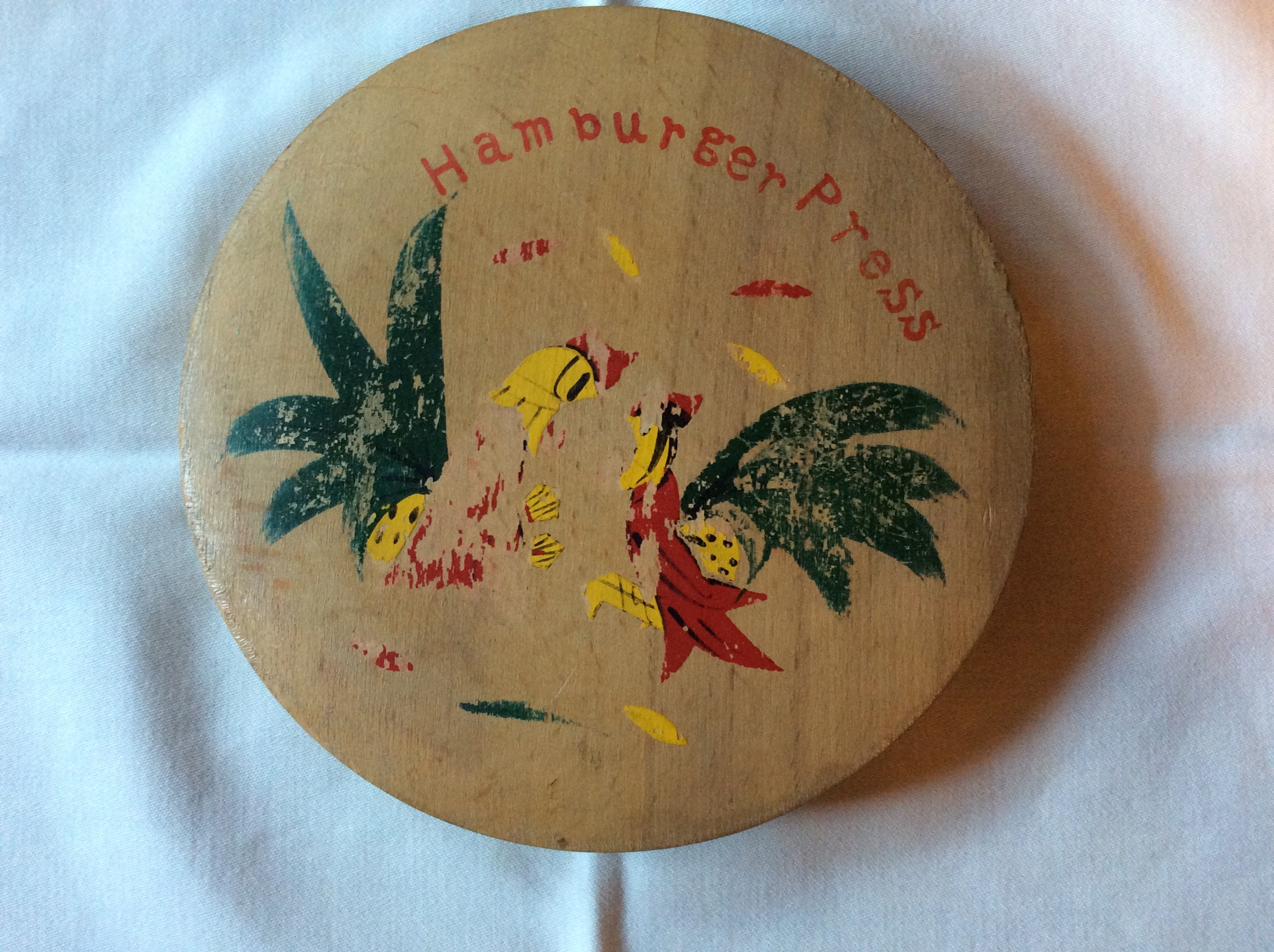 Vintage Wood Hamburger Press With Rooster And Hen Hanging Etsy Vintage Wood Wood Vintage